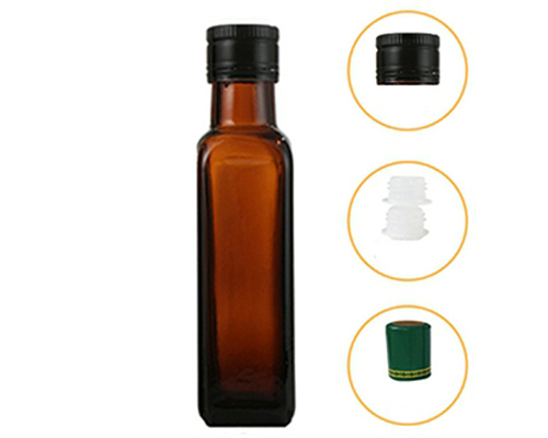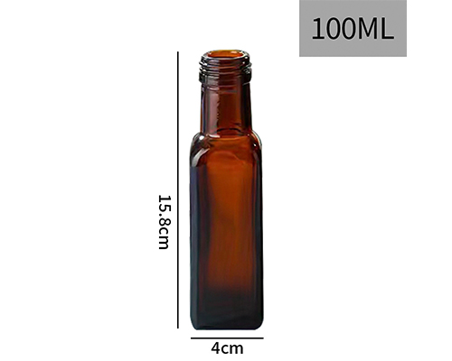 The 100ml olive oil bottles are made of high-quality brown glass and have a square shape for easy use. The dark brown glass bottle can effectively prevent the oxidation of olive oil by light and extend the shelf life of the product. The dark glass bottle also adds a high-end feel to the product.