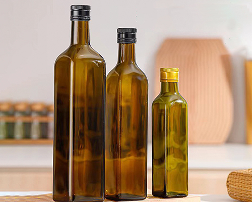 Transparent glass oil bottles can show the color and texture of olive oil, adding a decorative effect. Dark amber and green glass bottles can effectively block light and oxygen, and maintain the freshness and quality of olive oil.