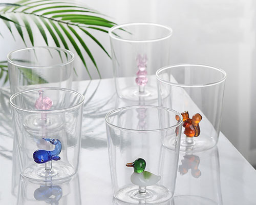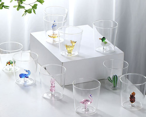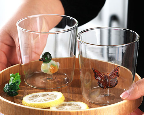 3D glass cups are made of high borosilicate glass, hand-blown by artisans. Clear drinking glass contains handcrafted animal figurines inside. Our glass cups are crystal clear, with transparent 3D animals and plants built in, with various styles, looking fresh and refined.