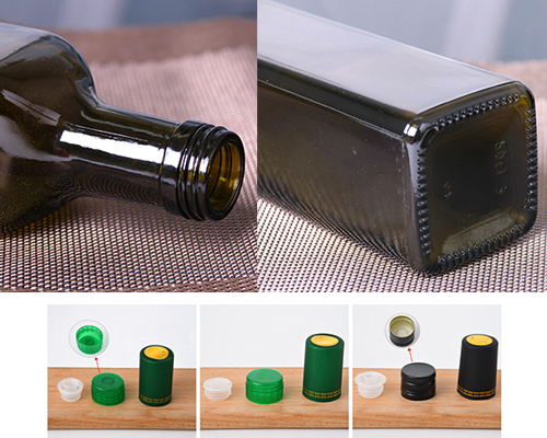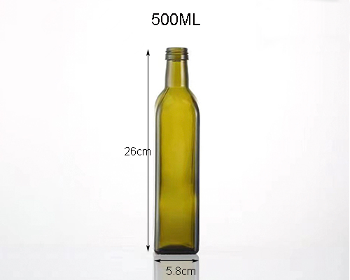 The 500ml olive oil bottles have a moderate capacity, suitable for daily household use, and are easy to control the amount used. We have 3 colors of 500ml square glass olive oil bottles, clear, brown, and green.