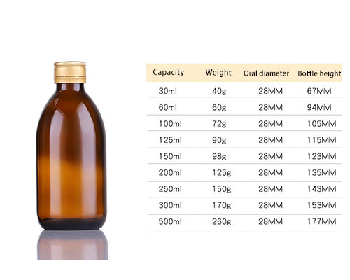 The amber glass medicine bottles are designed with a small mouth, especially for oral liquids, syrups, essential oils, and other liquids. The brown glass bottle mouth is a spiral mouth, which can be matched with screw caps of various materials, such as metal, plastic, and wooden caps.
