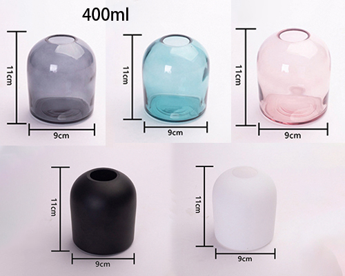 Colored glass aroma diffuser bottles are available in translucent colors and opaque white and black, adding a sense of visual depth or interest. Each empty glass bottle can hold 400 ml of liquid, they can be used as essential oil diffuser bottles or glass vases.