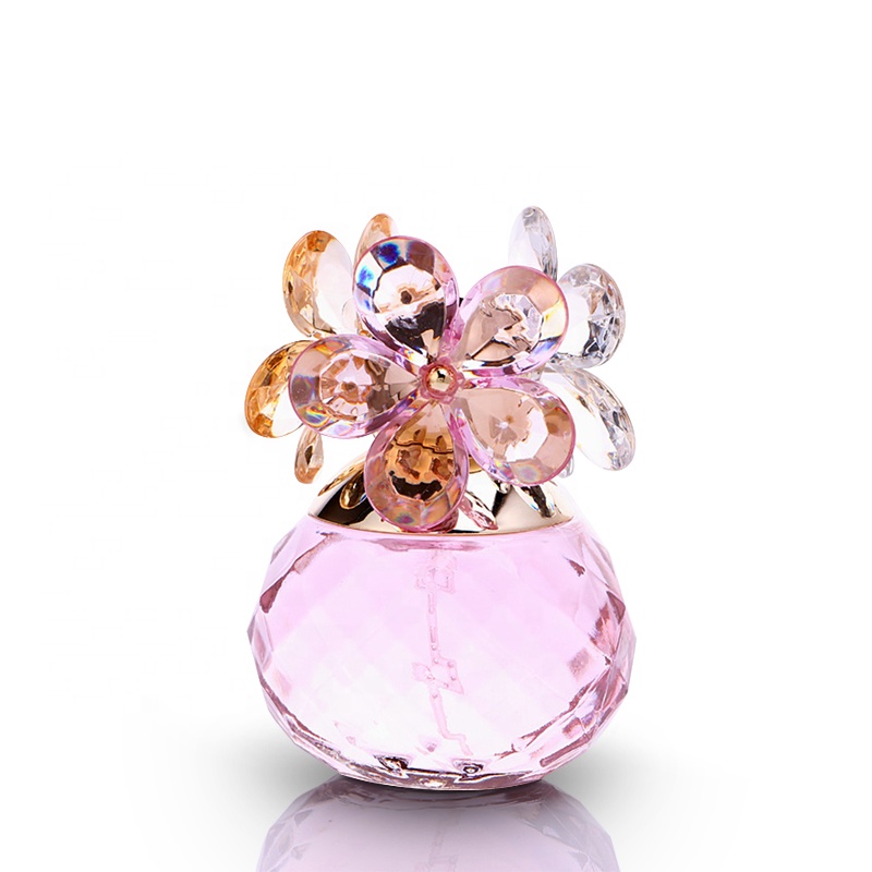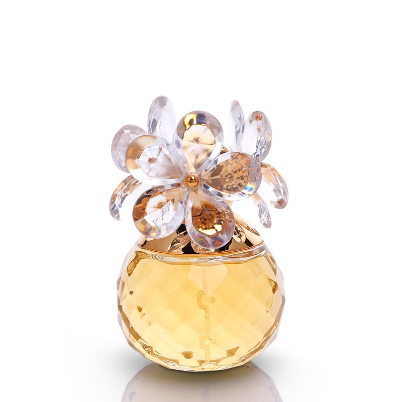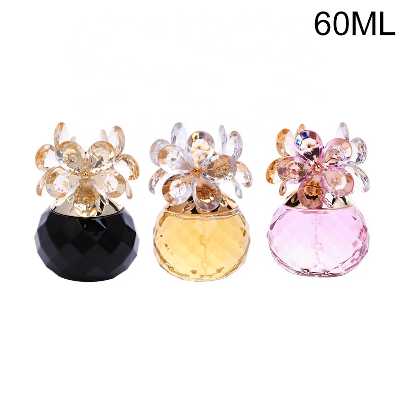 The perfume bottle adopts aluminum spray head, which sprays evenly and has good atomization performance of liquid spray. Spherical colored bottles with crystal flower-shaped caps, each perfume bottle is a work of art.
