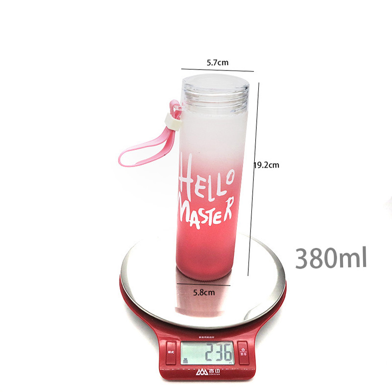 Gradient frosted glass bottle is simple and generous, stylish and practical, comfortable to hold and non-slip. The best glass water bottle holds 380ml of liquid for daily hydration needs. The frosted glass water bottle can hold a variety of drinks, tea, fruit juice, it looks especially seductive.
