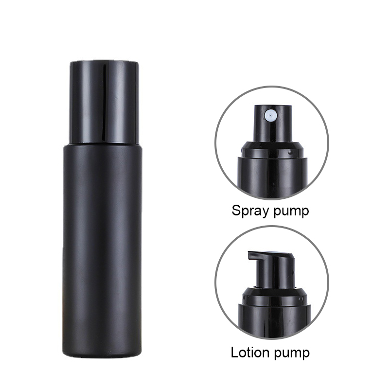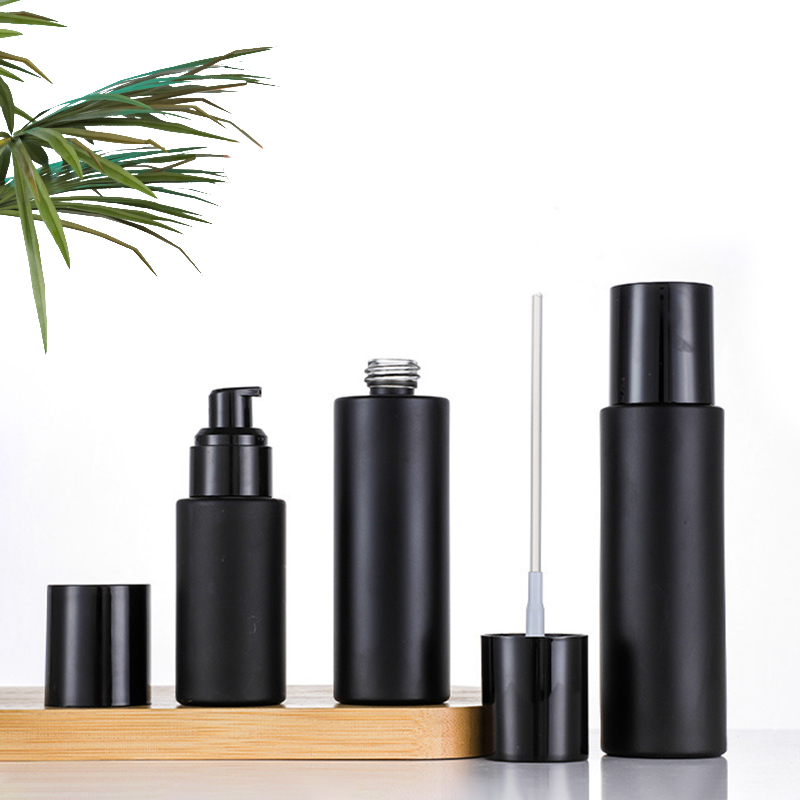 The black lotion bottles capacity is 20ml, 30ml, 40ml, 50ml, 60ml, 80ml, 100ml to choose from. The black empty glass bottle equips with a spray pump and a press pump. They are used to pack lotions, toners, perfumes and other cosmetics.