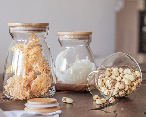 These food storage jars are made of highly transparent glass, allowing the stored food to be clearly seen.