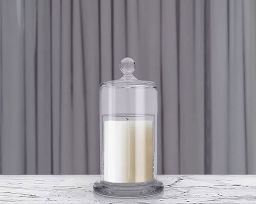The candle holder with glass cover is made of high-quality glass, which is durable, not easy to break, and has a long service life. The glass display cover has a top handle for easy movement. Glass jars with display lids are versatile and can be used as candle jars or flower pots.