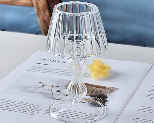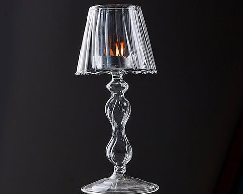 The clear glass candle holder has the appearance of a table lamp. Just place a candle inside the lamp and let the natural light flicker through the glass, the glass candle table lamp creates the perfect ambiance.