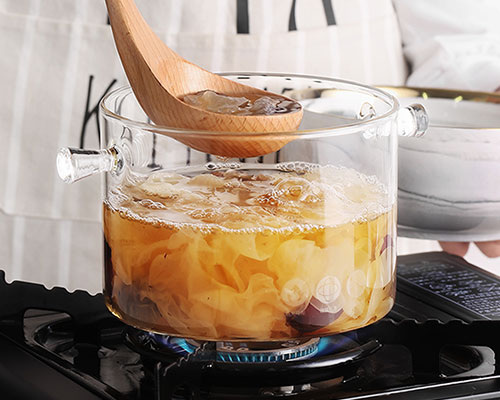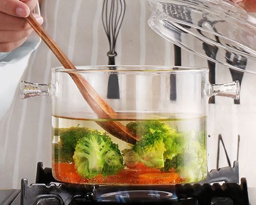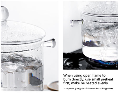 The kitchen cooking pot is made of high borosilicate glass, which can withstand sudden heating and cooling, and can be used in gas stoves, refrigerators, microwave ovens, and stoves. Our clear glass pots are made of food-grade borosilicate heat-resistant glass, 100% lead-free, non-toxic, and healthier than stainless steel cooking sets.
