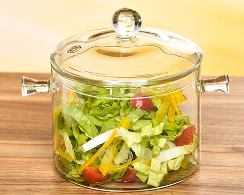 Transparent cooking pots are made of durable glass that locks in the flavor, heat, and moisture of your food. The glass lid has small holes to prevent water from overflowing, while keeping the cooktop clean.
