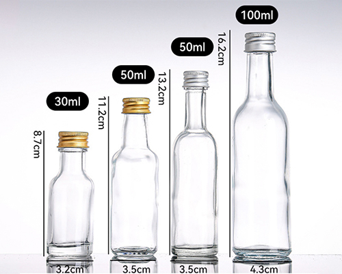 The clear glass oil bottles are available in 3 capacities: 30 ml, 50 ml, and 100 ml. Each glass oil bottle has a high-quality inner stopper and a screw-on aluminum cap for strong sealing. The screw-on cap is available in gold and silver, which enhances the quality of olive oil packaging.