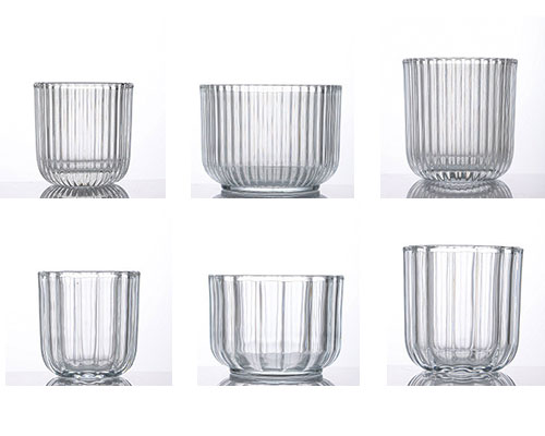 We have two different styles of vertical striped transparent glass candle holders. Each set consists of 3 candle holders of different sizes, 7.5*7.5*7.8cm, 10.5*10.5*7.8cm, and 9*9*9cm. These glass candle holder sets are suitable for scented candles, flameless LED lights, or tea candles.