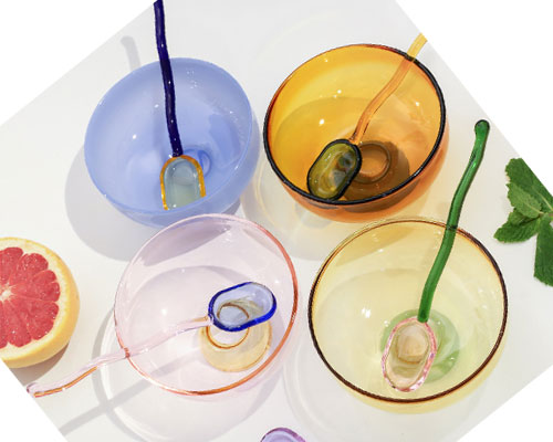 The colored glass bowls are available in brown, blue, green, and pink. The glass bowls stack compactly and make plenty of room for other tableware in the kitchen cabinet. The colorful elements not only give the glass tableware a light and smart design aesthetic, but also suit the refreshing food color of delicious salads, which instantly whets the appetite.