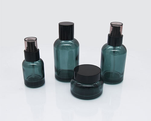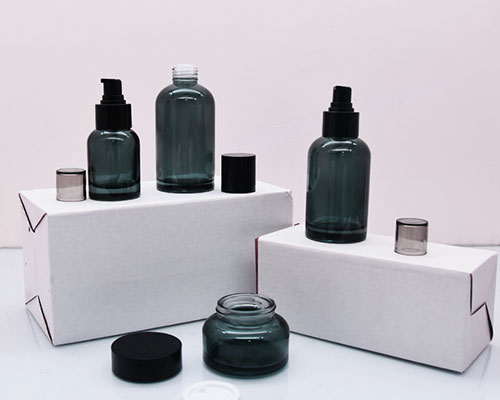 Yafu Glass manufactures and wholesales cosmetic glass bottle sets. The blue glass bottle with a black plastic cap makes the cosmetic packaging look premium. These empty glass bottles and jars easily store lotions, serums, eye creams, face and body creams, natural oils, perfumes, and more.