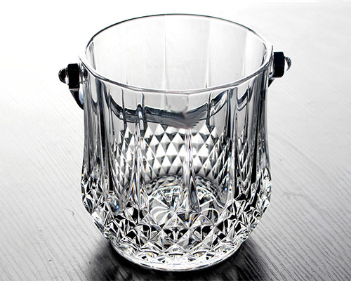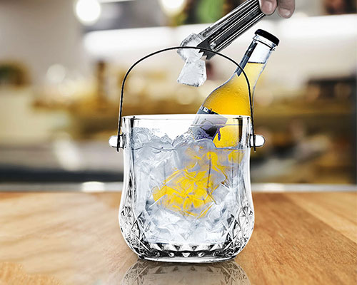 The crystal champagne bucket is a very practical bar item. Clear glass allows monitoring of ice and water levels. The crystal glass ice bucket with handle keeps beer, wine, cold drinks, and champagne at room temperature, making chilled wine a breeze.