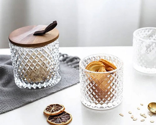 Crystal glass jar canisters are oval in shape and have no sharp edges. It’s sturdy, durable, and reusable. Easy to clean with a damp cloth, not easy to mold.