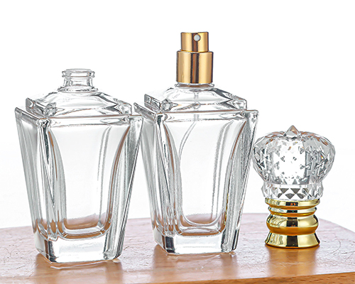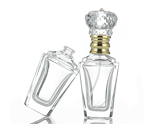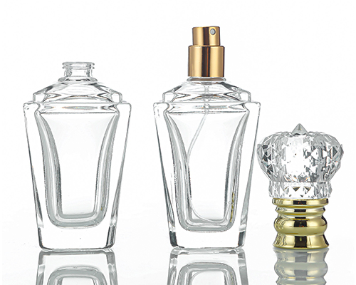The crystal glass perfume bottles adopts a square funnel glass bottle design, which can hold 60 ml of perfume. The crystal crown cap has a golden bottom, which makes the perfume bottle packaging more high-end.