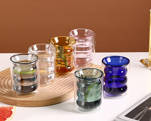 Yafu Glass is a glassware manufacturer, we offer various shapes of glass cups. We can custom double glass cups shapes and colors.