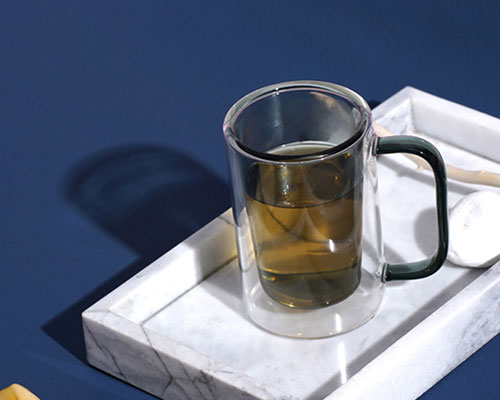 The double walled glass cup line is smooth, the bottom is flat and thickened, and the drinking experience is good. The colored glass handle design is an anti-scalding grip comfortable.