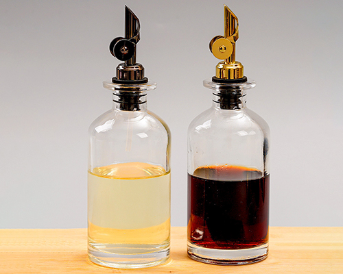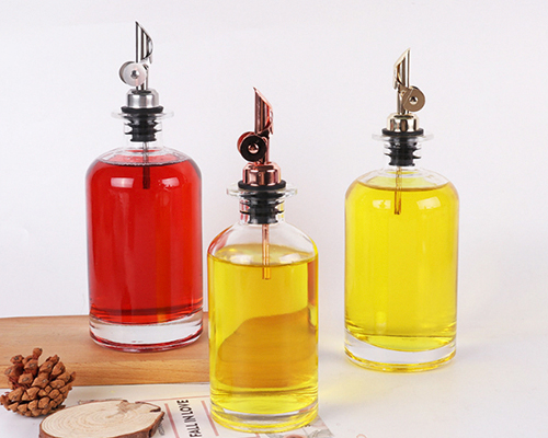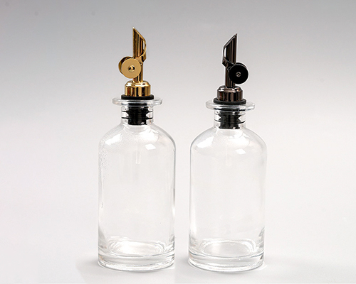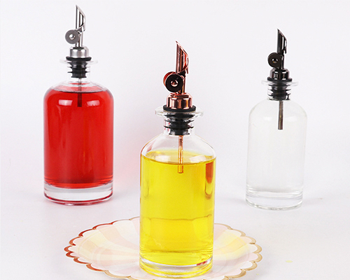 The empty olive oil bottle dispenser features a drip-proof stainless steel pourer. It controls the flow to ensure you get just the right amount of olive oil. We have empty glass bottles in 350ml and 500ml capacities, and provide stainless steel pourers in gold, silver, or black.