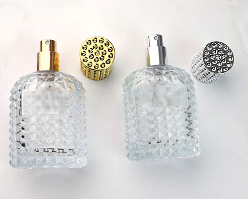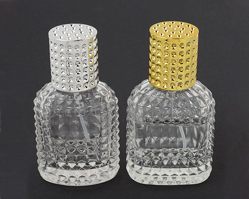 Each glass perfume bottle comes with a fine spray and a metal cap.