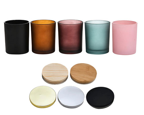 We have frosted glass candle jars with lids in a variety of colors to choose from. Different lids are available: bamboo lid, wooden lid, gold/silver/rose gold/black metal lid.