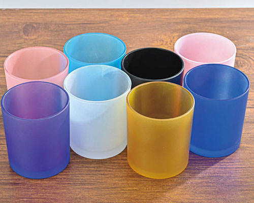 Frosted candle jars are made of safety standard certified thick glass with a frosted finish, and they come in colors like pink, purple, white, blue, green, brown, and more.