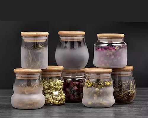 The frosted glass jars with lids use high-quality food-grade borosilicate glass and eco-friendly bamboo wood lids. Our glass jars are beautiful, lead-free, and available in a variety of shapes. Glass containers with bamboo lids can store different spices, tea, coffee, beans, sweets, nuts, herbs and more.