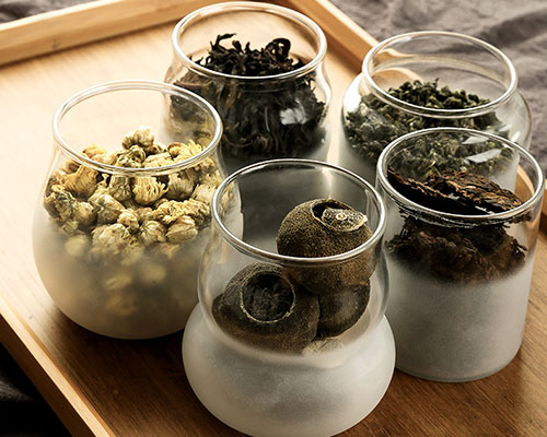 Glass jars with bamboo lids are available in 5 different shapes, each in clear and frosted styles. They are available in capacities of 180-500 ml. The smaller size glass jars are not very small and are great for tea, sugar, and spices. Small-size frosted glass jars with lids are stackable, take up minimal storage space, and keep your kitchen organized.