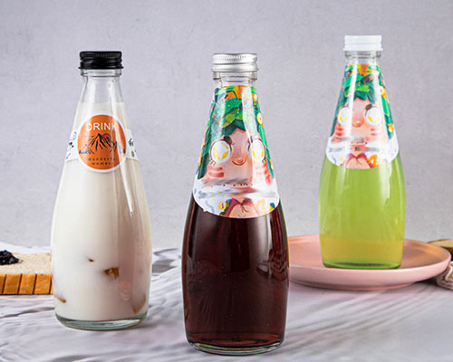 Yafu Glass is a glass bottles manufacturer, we offer fruit juice glass bottles and lids in different shapes. These glass beverage bottles offer different drinks and look beautiful when filled with colorful juices. They are great for storing water, milk, iced tea in the refrigerator for everyday drinking.