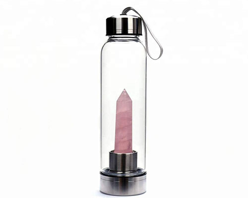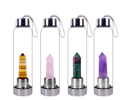 The gemstone energy bottle is made of borosilicate glass, suitable for hot or cold drinks, and easy to clean. The crystal energy water bottle contains a detachable natural crystal center and lid. We offer Gemstone Energy Bottle Wholesale in different caps ans colors.
