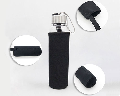 Stainless steel cover with handle is easy to carry. The black sleeve of glass water bottle protects the glass bottle and prevents burns to your hands.