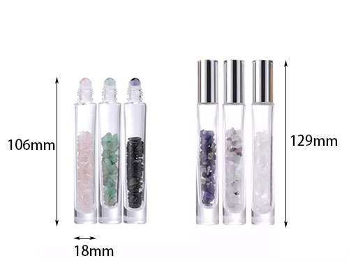 These beautiful gemstone glass bottles are the perfect addition to your collection of essential oils. When you want to use these glass bottles, you can pour out the mini stones and wash them with cold water before using. Roller bottles can also be used as perfume bottles.
