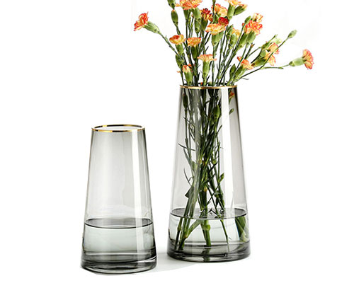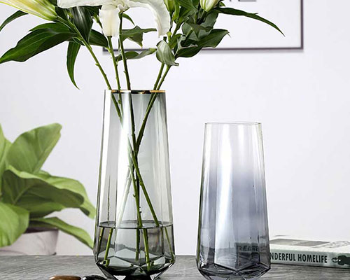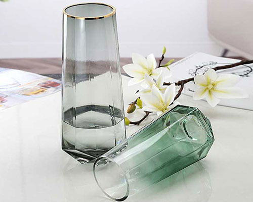 The geometric glass vase has a minimalist style, and the gradient color vase is suitable for various styles. The minimalist style translucent glass vase with gold rim is a very stylish decorative vase, with a simple bouquet, it can create a different home atmosphere.