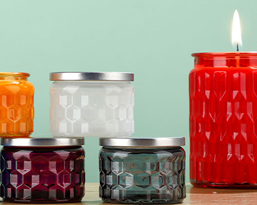 Glass candle jars with lids are unique embossed glass jars. Glass jars are the best containers for making candles. Glass candle jars are reusable. Glass jars can also be used to store small items after the candles are used up.