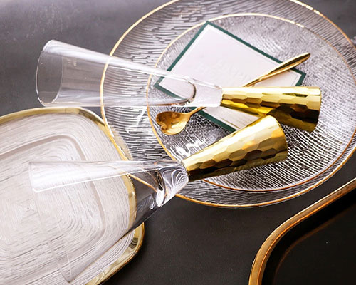 These champagne cocktail glasses feature a unique textured stem design that creates a beautiful look and texture, adding a luxurious and bright feel to parties and tables.