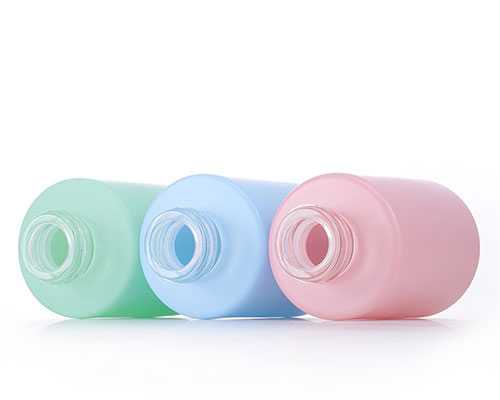 The capacity of the glass container for lotion is 30ml. Available colors are pink, blue, purple, and green. Surface treatment can be hot stamped. The color lotion bottles are made of sturdy and durable glass material, environmentally friendly and healthy, with no peculiar smell, and safe to use.