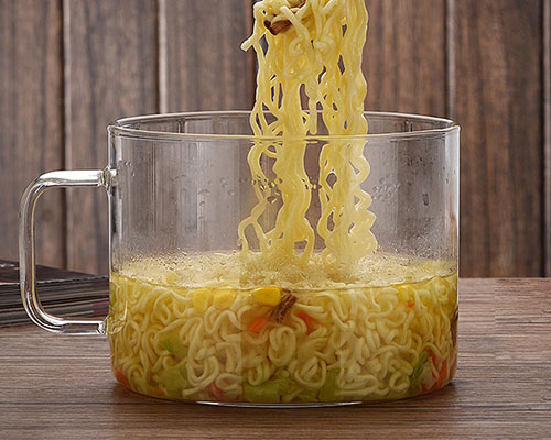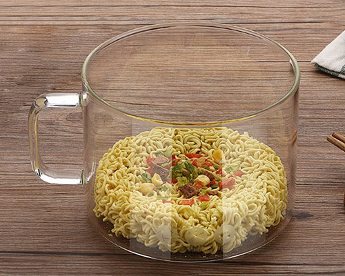 This is a nice glass cooking pot with lid, the clear glass makes cooking easy to see at a glance. It’s the perfect container for desserts and salads, and it can be used as a pot as well as a bowl. The glass bowl is healthier than plastic or stainless steel noodles bowl.