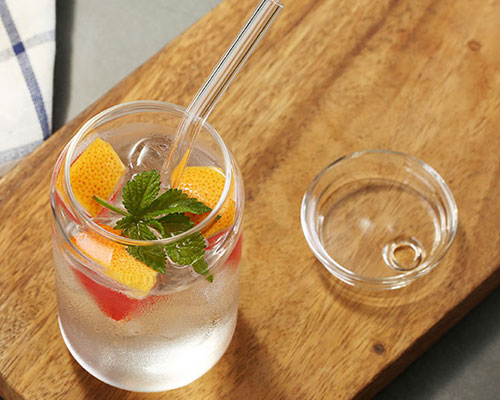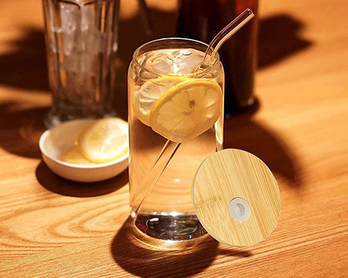 We offer glass lids and bamboo lids for these glass tumblers. The lid is designed with a small hole, just enough to put a glass straw. These lids can prevent dust from getting in, and drinks from spilling, they also can better maintain the temperature of the drinks in the cups.