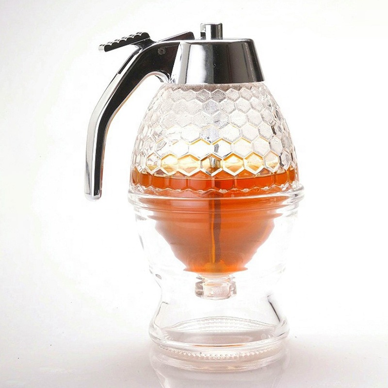 This glass honey jar is very convenient and easy to clean, making it an essential utensil on the table.
