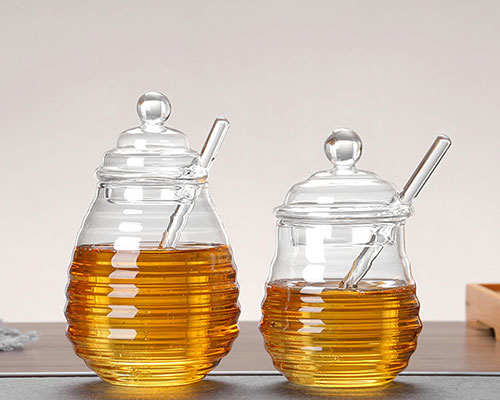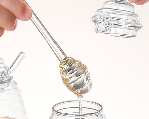 The glass honey pot bottom is flat and thickened for more stable placement.