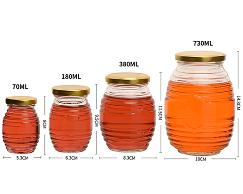 The glass honey pot jars are made of high-quality glass with high transparency, which can better show the texture of honey. We have a variety of specifications, which can hold 70ml, 180ml, 380ml, and 730ml of liquid.