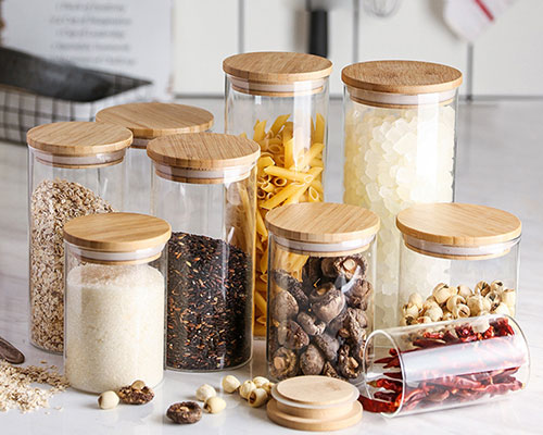 Glass jars for storage have the characteristics of good stability, high hardness, heat resistance and better light transmission.