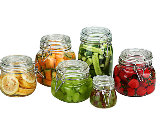 The glass jars with glass lids wholesale are used for food storage. Each glass Jar with glass lid is the standard and classic option. Glass jars are suitable for all kinds of food packaging in the kitchen. We offer this glass jar with glass jar in 3 different capacities: 500ml, 750ml, 1L, and 2 different colors: clear and blue glass jar.