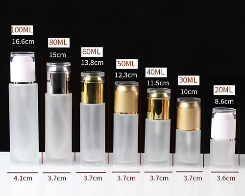 The glass lotion bottle is made of frosted glass material and is an empty refillable lotion bottle. The capacity is 20ml-100ml for your choice. Used for packaging essential oils, perfumes, lotions or other cosmetics.