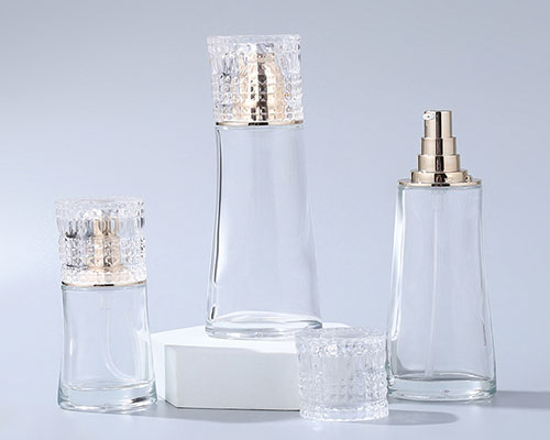 The glass lotion bottle has a smooth body and a well-sealed cap ensures leak-proof. Glass bottles are reusable and recyclable and are widely used in cosmetic packaging.