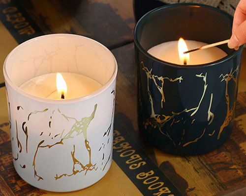 Glass candle holders adopt marble patterns, it add a contemporary aesthetic, and soft-touch matte finishes complement every decorating style. Marble glass jars are available in 2 colours: white and black.