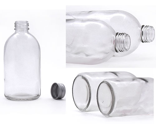 The clear round glass milk bottle with lid has rounded shoulders and a rounded bottom, and the chunky body is easy to label, making it very popular in personal care packaging. We offer Boston round glass bottles in different sizes, the tight sealing lid is easy to open and close.
