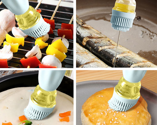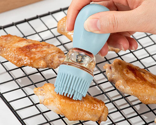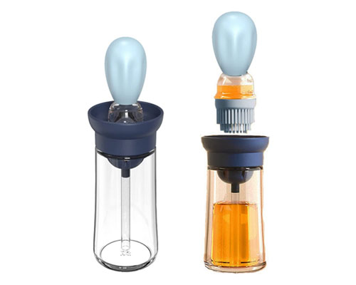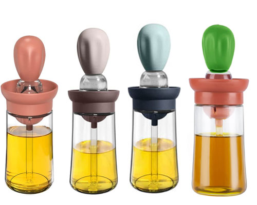 The glass oil bottle with silicone brush worked great on a variety of foods, including meats, pastries, veggies, and Marinade. With a single pinch, the oil is quickly drawn into the oil container. Then you can gently squeeze the silicone head to spread the oil on the food. The T-shaped dense brush head is great for spreading olive oil to food or pans.