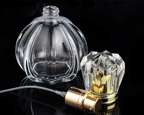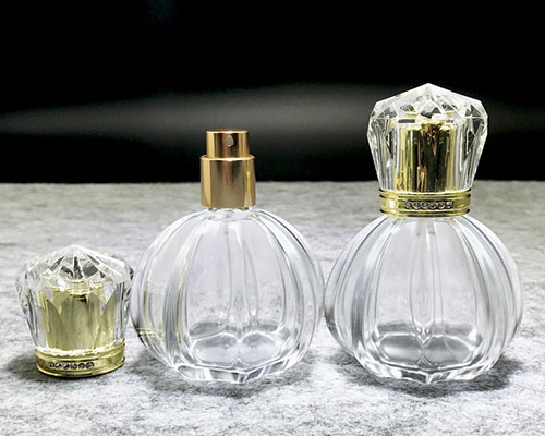 The glass perfume bottles 50ml are ideal for short trips. Clear glass perfume bottles come in the shape of a pumpkin and are a popular storage container for perfume. The cap of the perfume bottle is like a diamond, beautiful and unique.